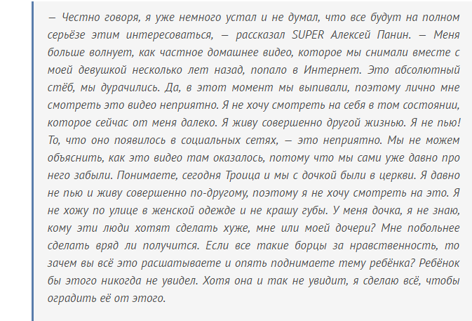 Еще в нескольких проектах Панин неплохо сыграл, но меня очень удивило, что этот человек в жизни совершенно другой — скандалист, дебошир, пьяница.. Да эпитетов можно много применять к этому «герою» интернета.