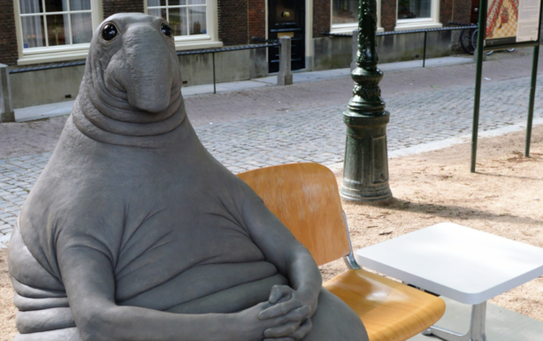 Для тех, кто не знает, откуда вообще появился этот персонаж, немного расскажу. Голландская художница создала скульптуру в виде ждуна, необычного существа без ног. Установили его перед детской больницей на стул, а потом и вовсе перенесли во внутрь заведения. Он должен был ассоциироваться с ожиданием хороших новостей, пока люди сидят в очереди. А потом герой настолько всем понравился, что стали даже заказывать проект на него в своих городах.