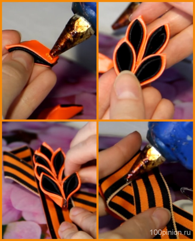 Брошь из георгиевской ленты