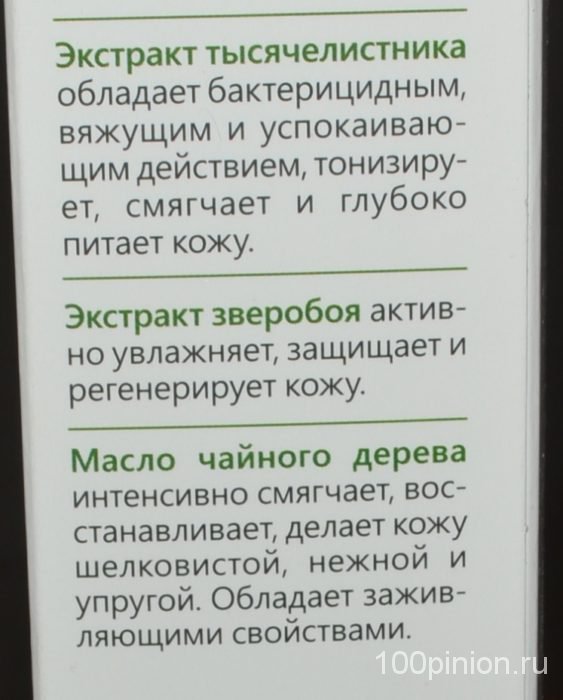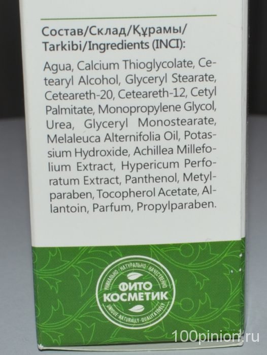 Конечно, производители немного слукавили, называя продукт натуральным, так как в начале состава все-таки засветились химические компоненты. Но правда в том, что действительно крем депилятор обогащен экстрактами зверобоя и тысячелистника, а также маслом чайного дерева. Благодаря таким компонентам моя кожа становится более питательной и увлажненной.