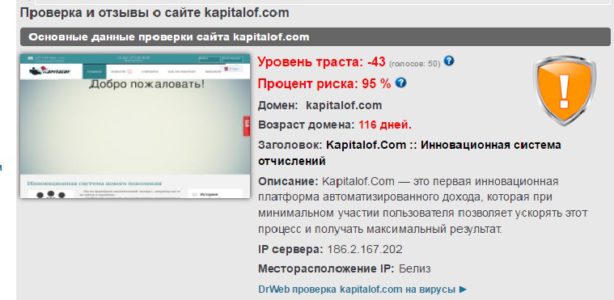Скажу больше, всего месяц назад открылся еще один домен мошенников, страница которого ничем не отличается от kapitalof.com, смотрите сами:
