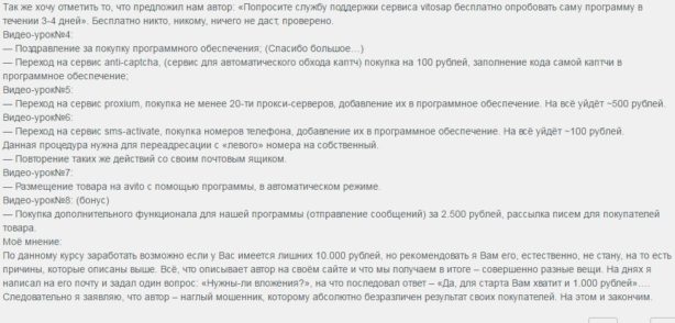 Кто его приобретал на самом деле, остался недовольным. Да, в нем действительно мимоходом описывается система заработка на Avito от 3500 рублей, а о подводных камнях информация поступает потом.
