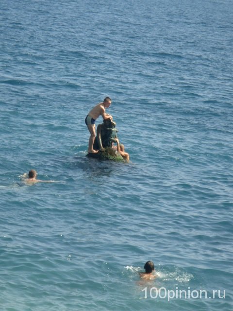 Первым делом мы отправились на теплоходе из Алушты в Ялту. При выходе на берег можно с улыбкой наблюдать, как местная мужская половина обхватывает памятник русалке в море.
