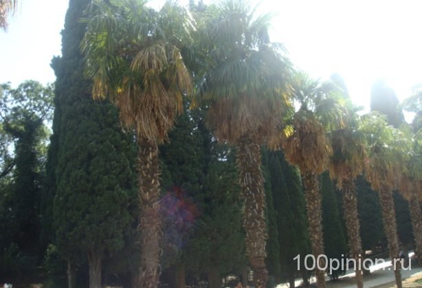 В этом местечке нужно не столько слушать гида, сколько любоваться зелеными насаждениями. От Ялты до ботанического сада всего лишь 10 км и местным жителям повезло иметь в округе такую аллею со столетними деревьями.
