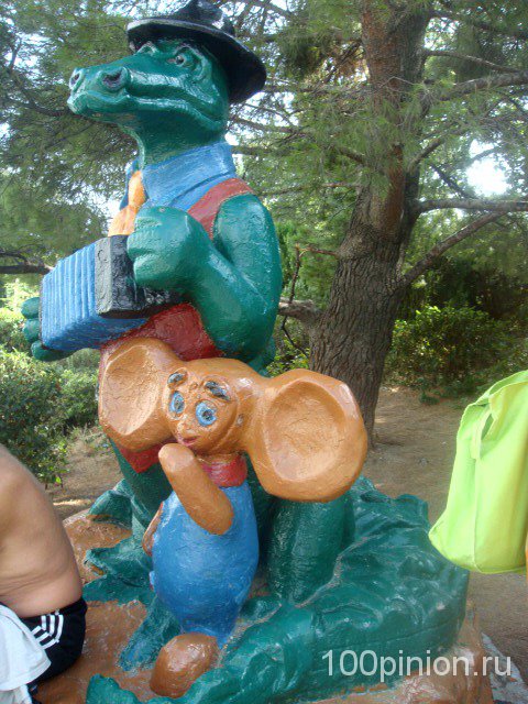 На территории оздоровительного центра ботанического Никитского сада сидят знаменитости с нашего детства – крокодил Гена и Чебурашка.