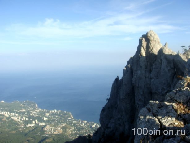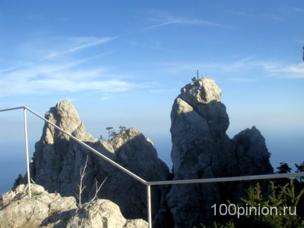 Самое интересное зрелище открывается при подходе к краю скалы, где видны зубцы Ай-Петри. Оттуда виднеется большой крест на одном из зубцов — «Спаси и Сохрани». Сколько же легенд ходило вокруг него… И будто парень от неразделенной любви по имени Петр сбросился со скалы, и то что с киносъемок просто забыли крест убрать.