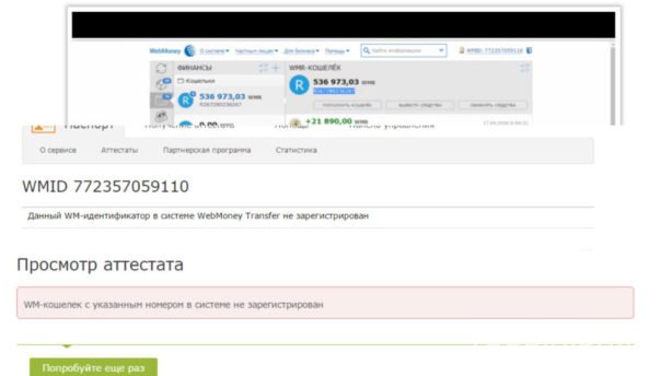 А теперь покажу вам более существенные доказательства. Ниже сделан скрин с видеоролика, где у владельца отображаются данные номера электронного кошелька Webmoney и WMID. Проверить их не составило труда. И в итоге мы получаем, что ни кошелька, ни wmid с такими данными не существует.