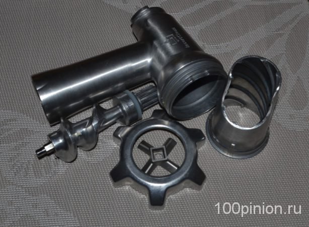- Материал корпуса и соединительных деталей. Самым практичным является металл (нержавеющая сталь). Пластик можно использовать для толкателей, лотка для мяса, задней части корпуса.