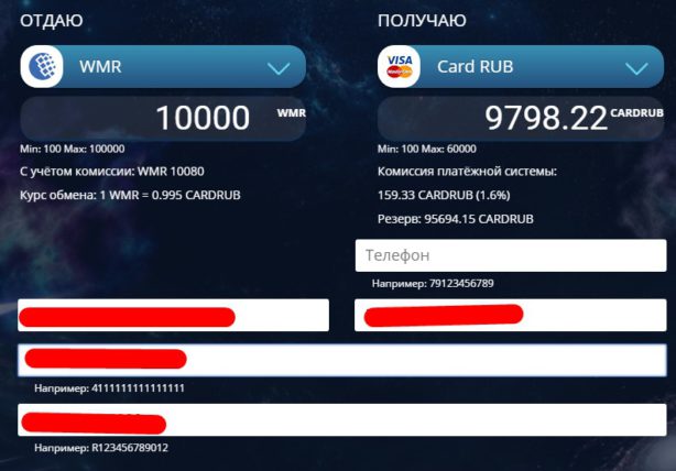 На указанную банковскую платежную карту не разрешен вывод средств для участника системы WMID.