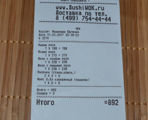 2. Возле моего офиса готовят. Один раз заказал там, не понравилось + выходит дороже, чем я заказываю с доставкой прямо в офис от другой знаменитой фирмы Сушкоф.