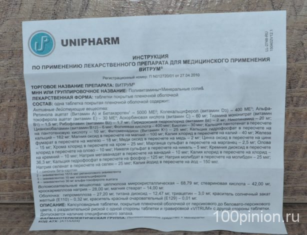 Vitrum Vitamins and Minerals имеет простую инструкцию: